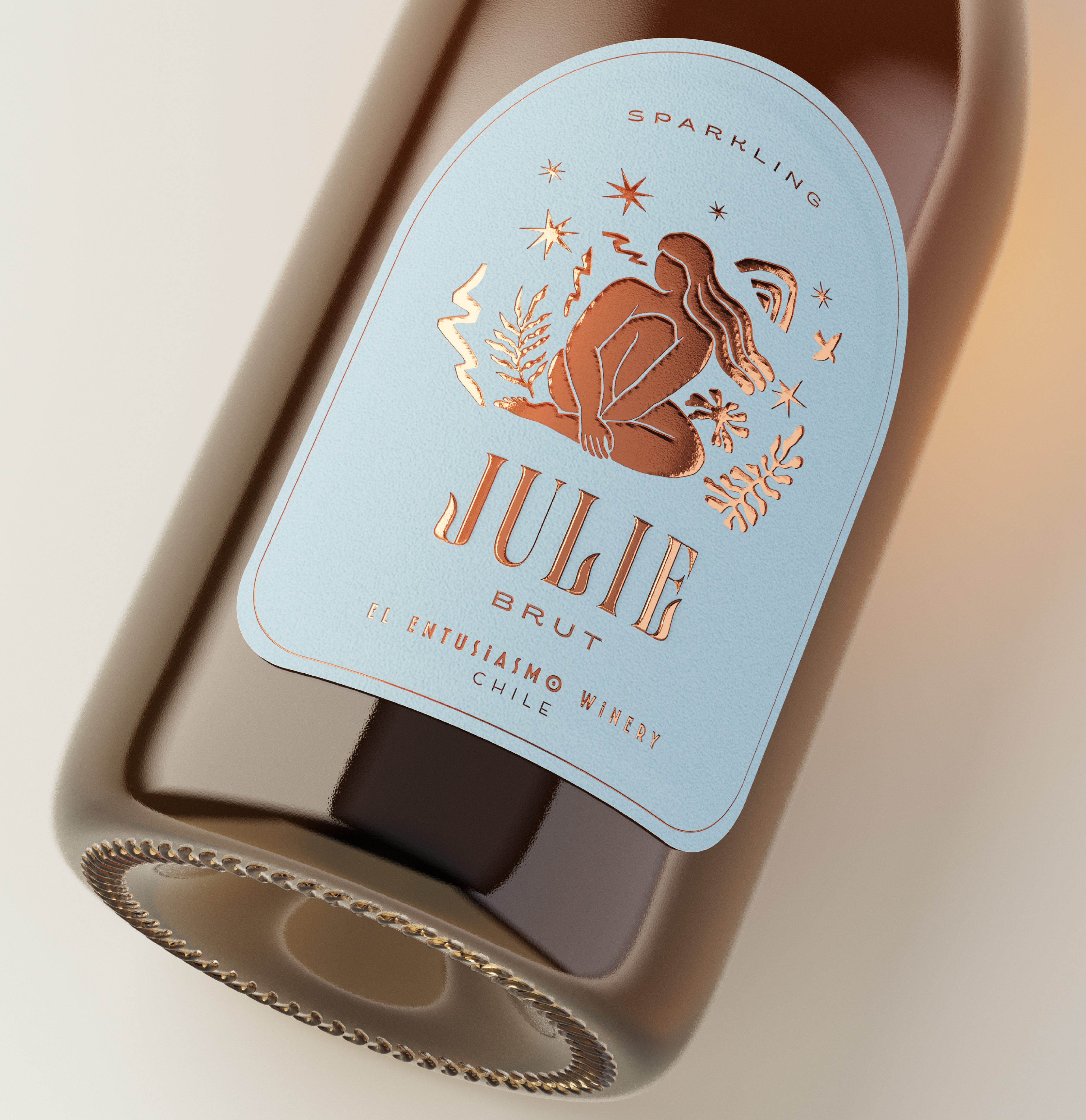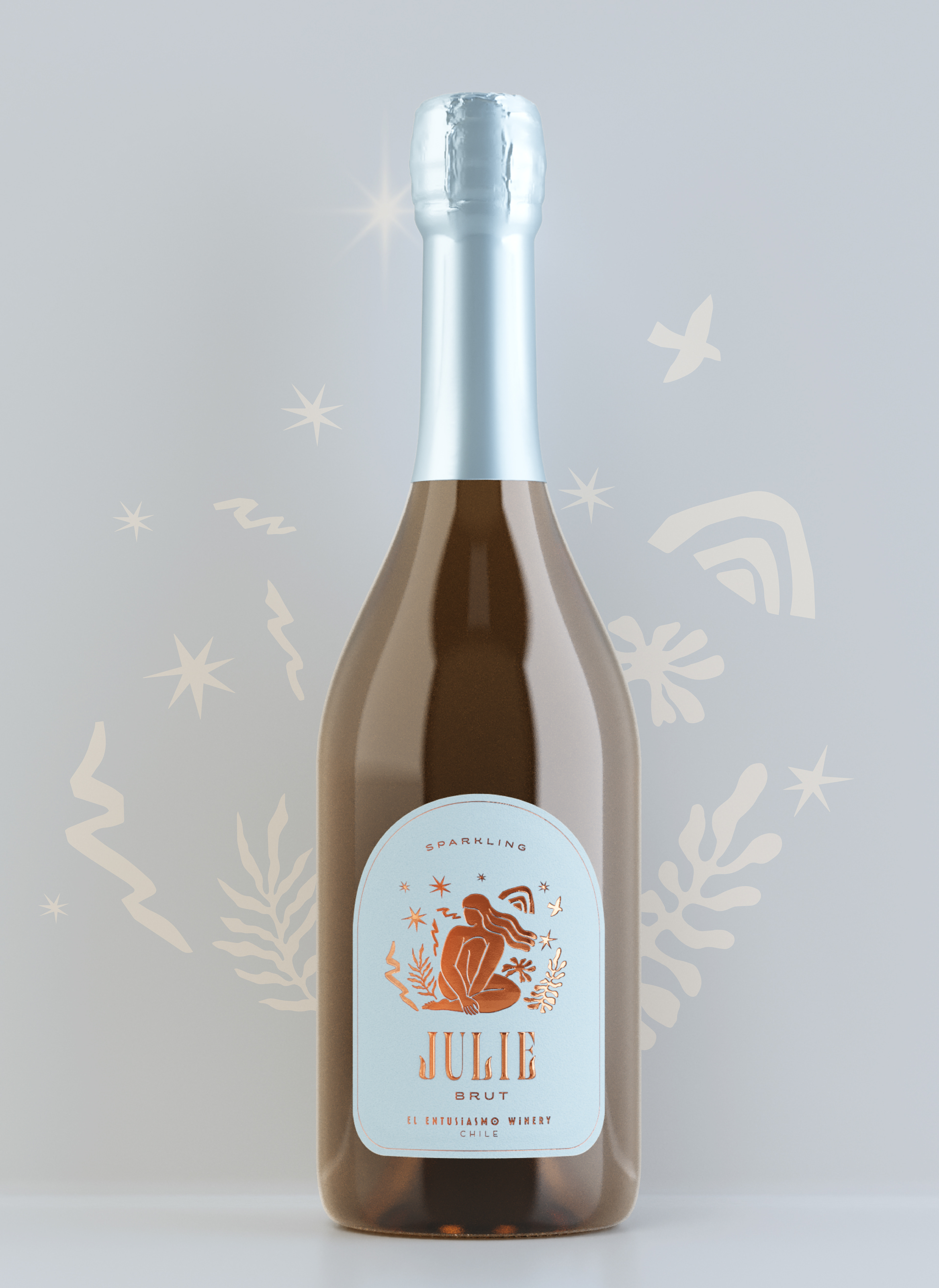 Packaging design for Julie Sparkling wine, @patagon_wines, Chile.